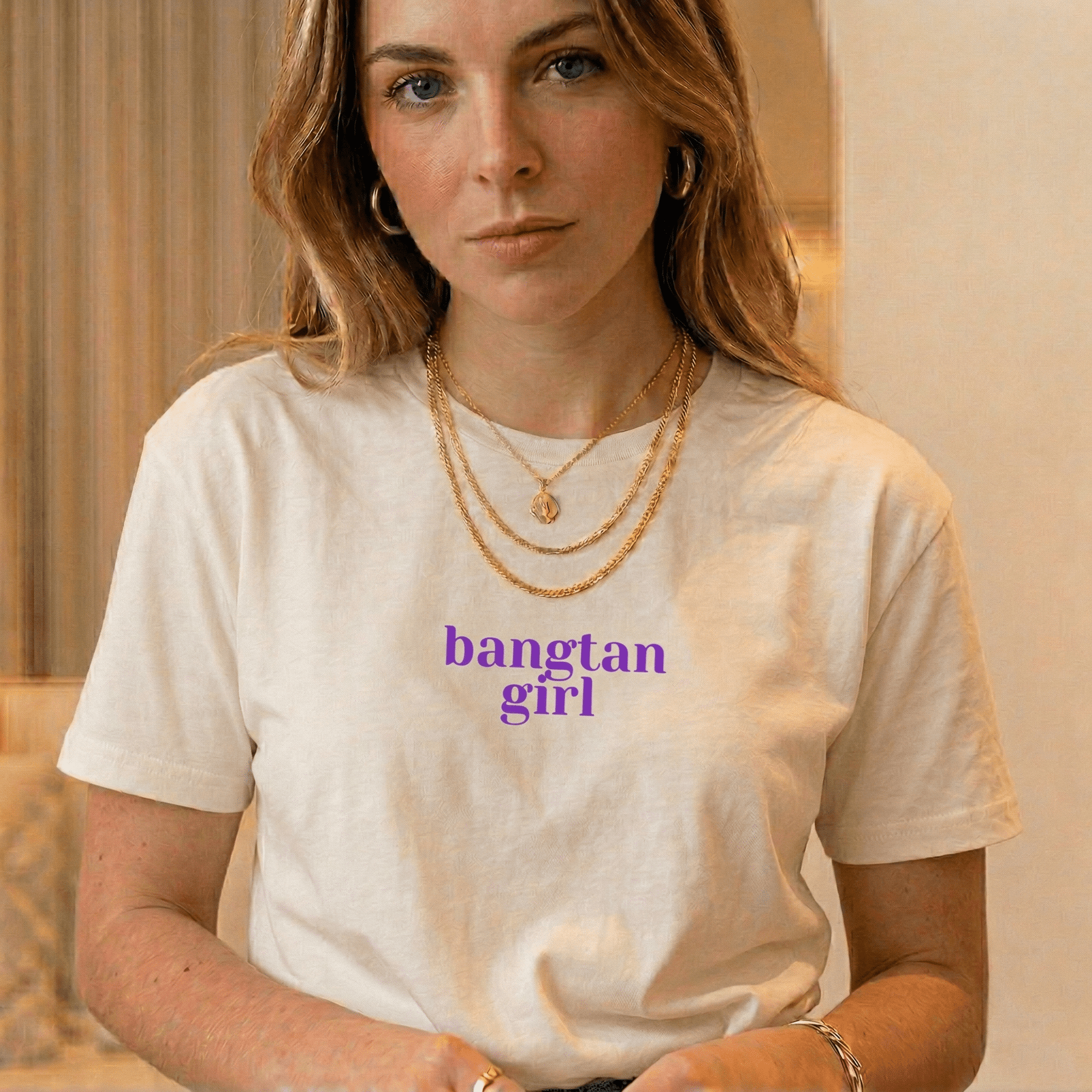 Kaufe jetzt BTSs Fan T-Shirt «Bangtan Girl» (White Edition) bei deinem K-Pop-Shop Seoulmate!